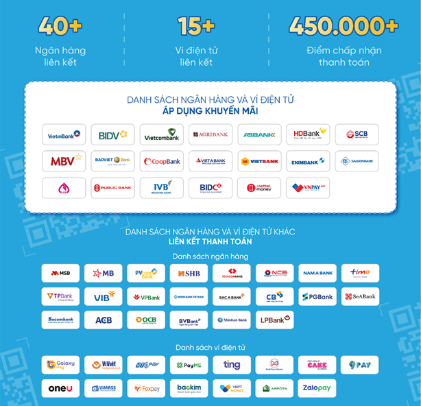 Quét mã VNPAY-QR trên 40+ Ứng dụng Mobile Banking và 15+ Ví điện tử liên kết