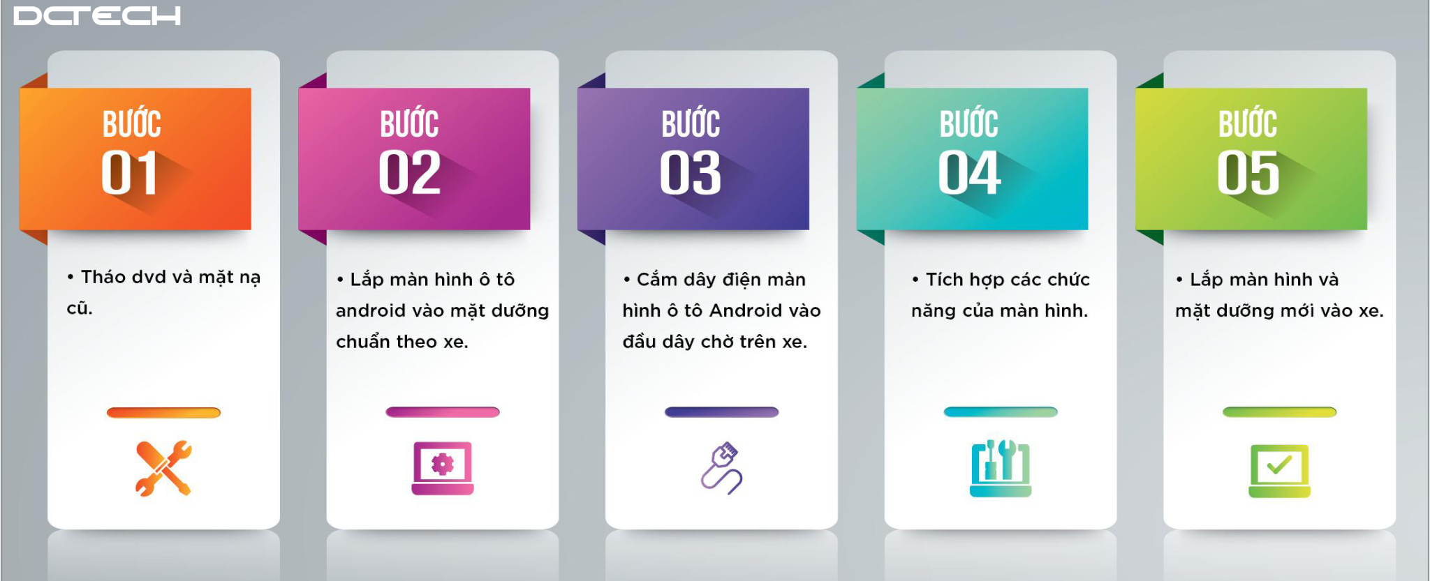 Với quy trình chuẩn kỹ thuật không chỉ quyết định trải nghiệm mượt hay không, mà còn ảnh hưởng trực tiếp đến độ ổn định điện điện tử của xe về lâu dài. Dưới đây là các bước lắp đặt phổ biến tại các đơn vị uy tín thuộc Đại lý DCTECH, đảm bảo giữ zin xe và tối ưu tính năng sau khi nâng cấp.